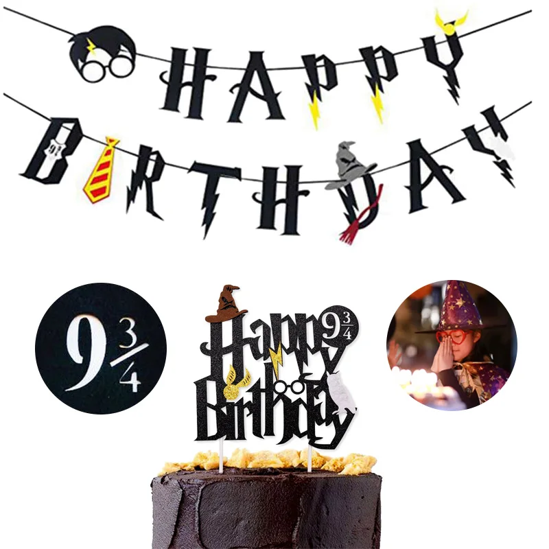 1 Набор «С Днем Рождения» баннер торт Топпер флаги бандаж для детей Волшебная тематическая вечеринка на день рождения украшение