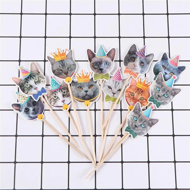 24 шт. милые кошачьи топперы для тортов, украшение для дня рождения, праздничный торт, тематические вечерние кексы для свадьбы, детский душ A35