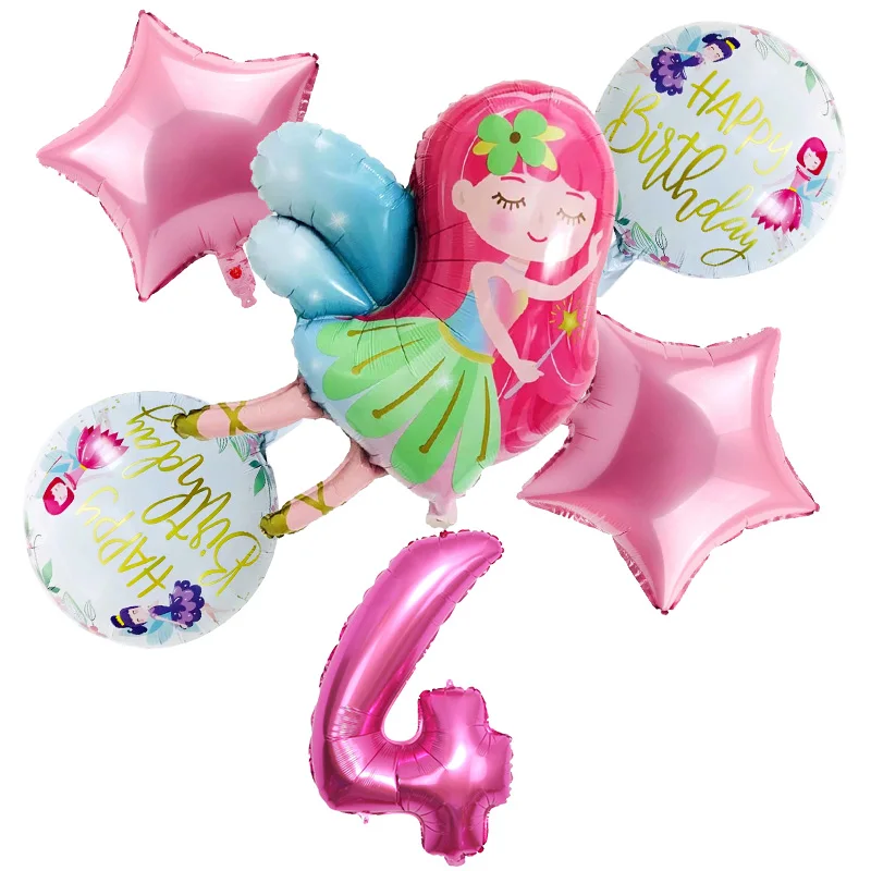Новинка, 6 шт./компл., маленькие воздушные шары Феи для девочек, 32 дюйма, розовые шарики с цифрами для девочек 1, 2, 3, 4, 5 лет, с днем рождения, набор воздушных шаров для вечеринки, украшение