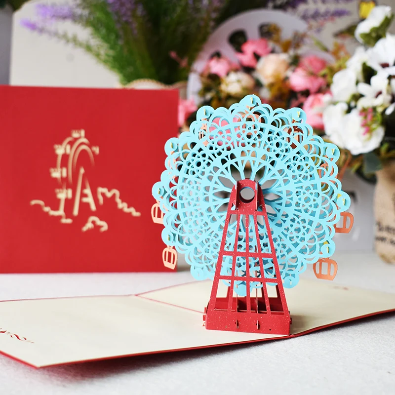3 цвета 3D колесо обозрения открытка-раскладушка день рождения с наклейка на конверт лазерная обработка поздравительная Почтовая открытка к...