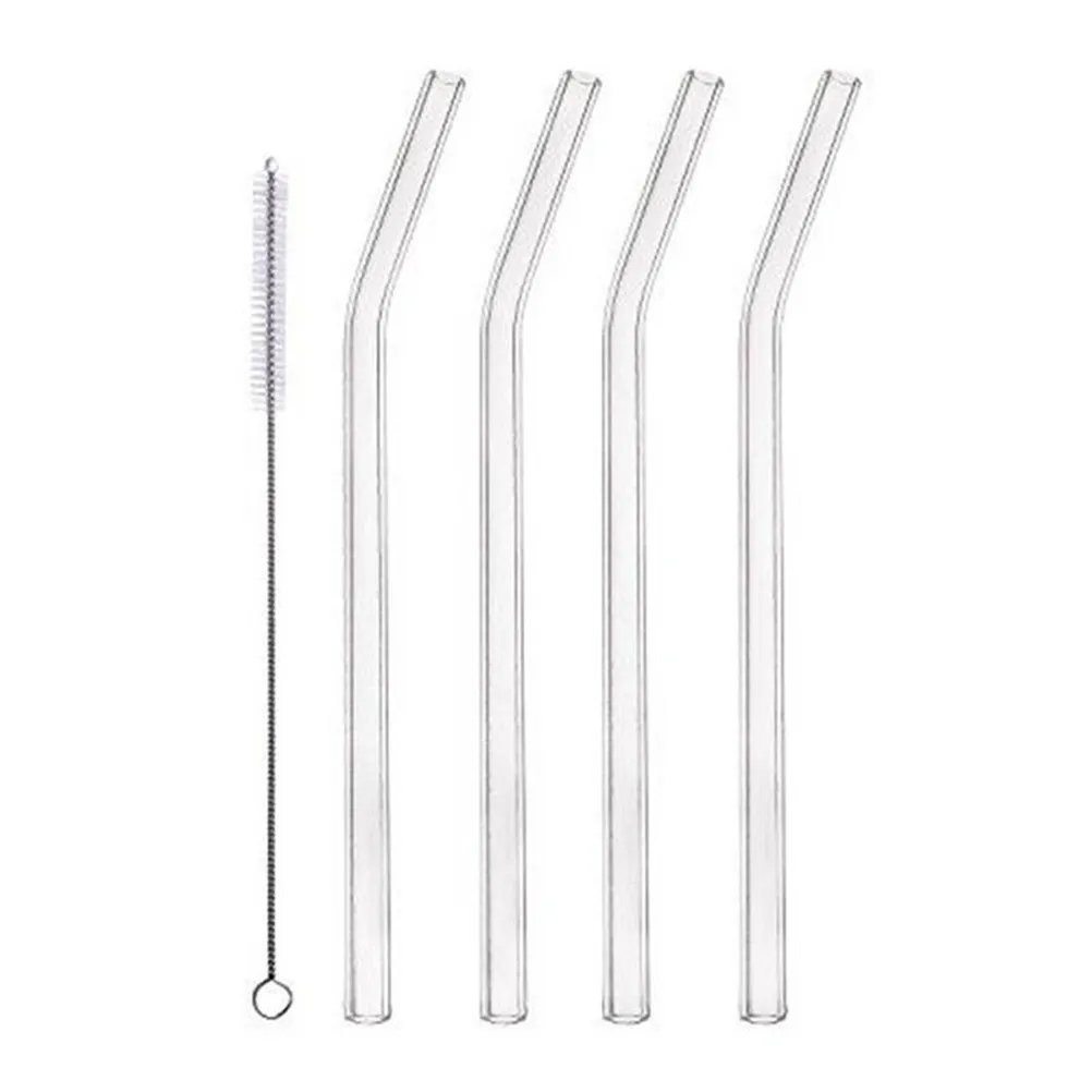 4 шт. ясно Бент Стекло трубки многоразового использования воды, сока, молока трубочкой присоски + 1 шт. щетка для очистки для Одежда для свадьб...