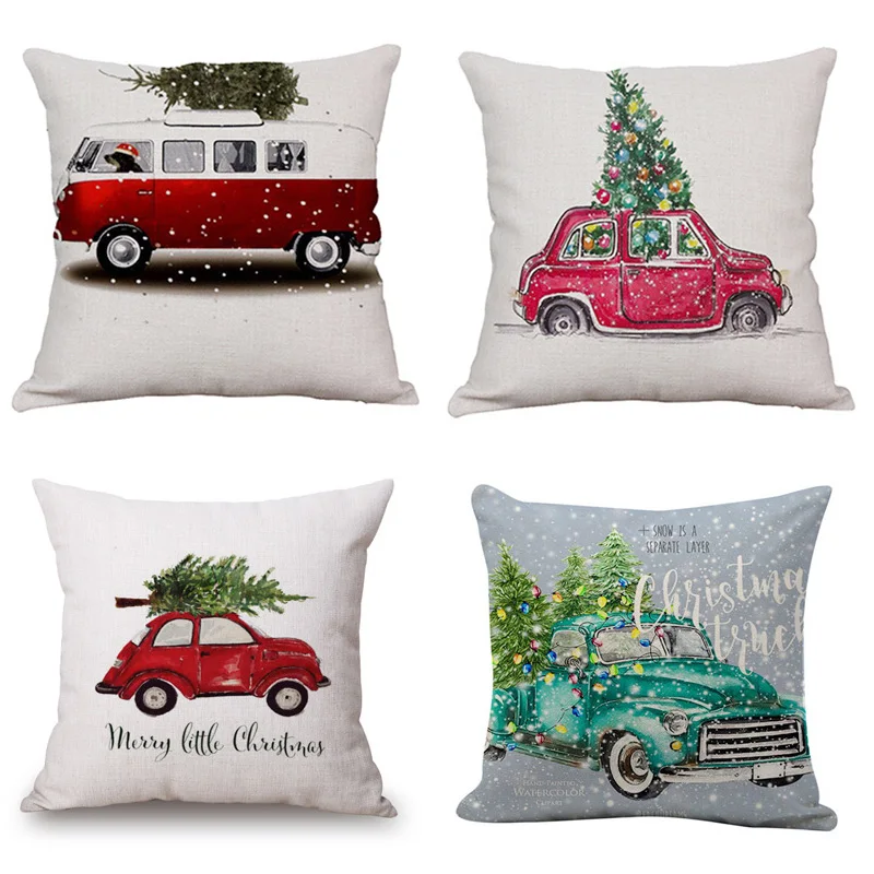 1 шт. Новогодняя Рождественская Подушка Рождественская елка льняная Наволочка Мультфильм автомобиль рождественские украшения для дома под...