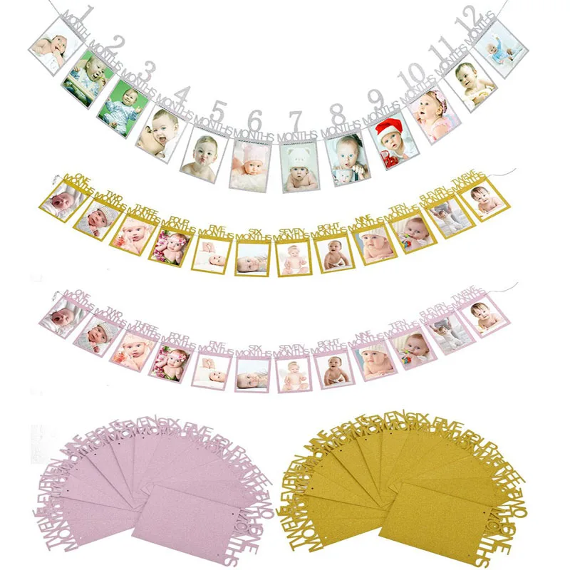 Детские 1st день рождения для мальчиков и девочек от 12 месяцев Фото гирлянды-флажки детские фото баннер для киоска мой для празднования перво...