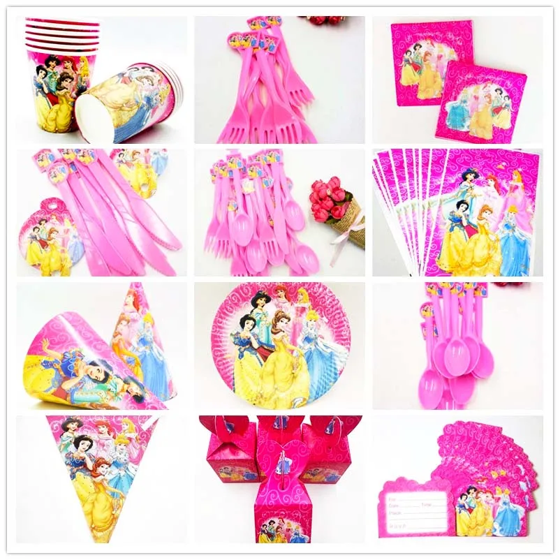 Вечеринка с принцессой поставки пластины чашки соломинки флаг скатерти коробка конфет Ножи Ложки салфетки день рождения Аксессуары