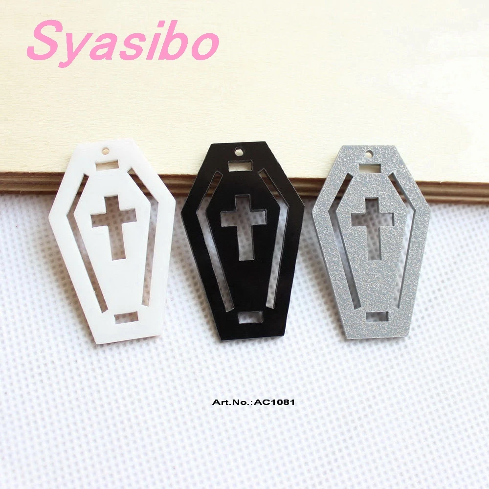 Мм (3 цвета, 30 шт./лот/) 50 мм акриловые гробовые серьги крест черный белый серебряный блестит вечерние Хэллоуин Вечеринка вырез 2 "-AC1081