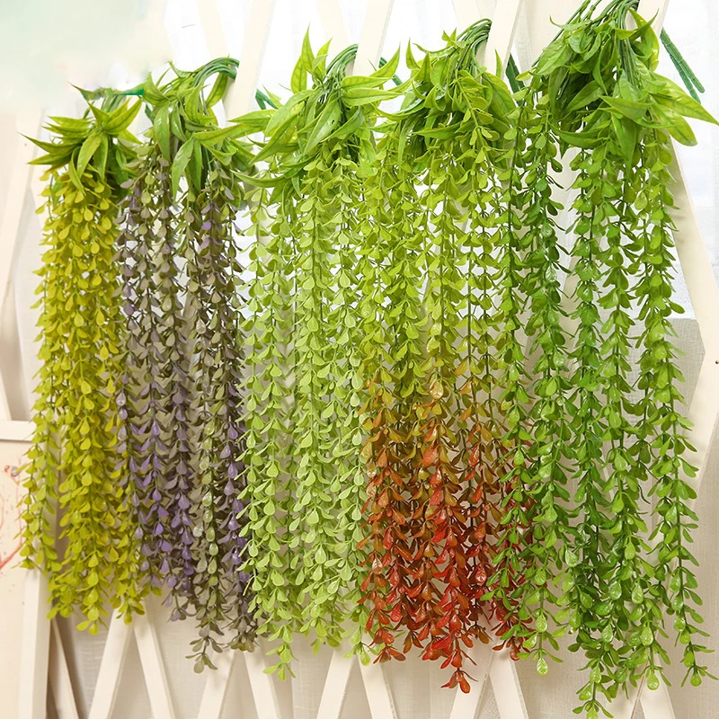 Висячие Настенные растения, искусственные цветы листья лоза зеленые ветви дома Свадебные украшения Пластиковые гирлянды из ротанга Flores De Papel
