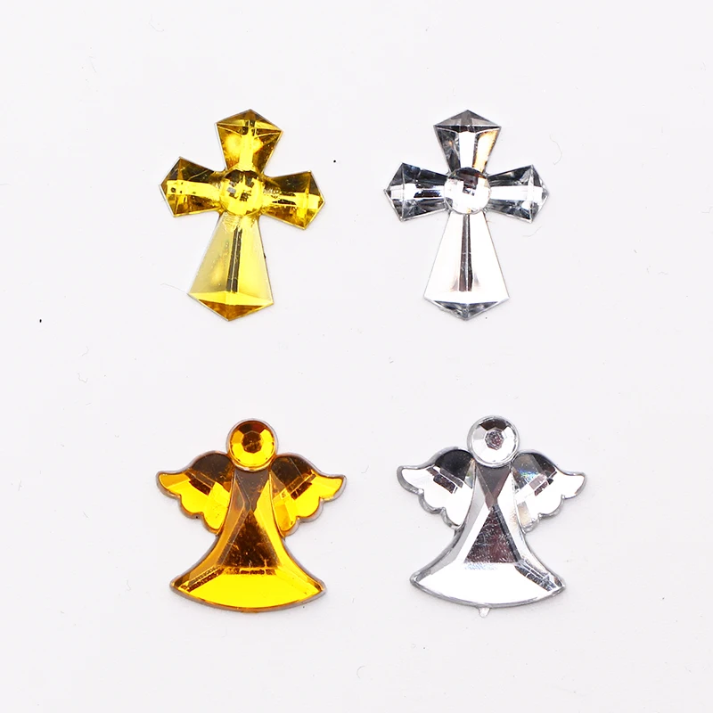 100/200 шт цвета: золотистый, Серебристый Крест Ангел Акриловые стразы с плоским основанием, благодаря выдвижной задней панели, дрель ювелирны...