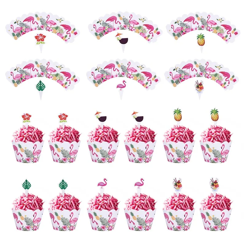24 шт. розовые термосы с изображением фламинго обертки для пирожных торт Топпер для свадьбы День рождения тема тропические вечерние украшен...