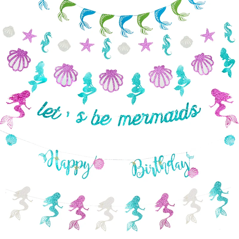 WEIGAO Happy плакат "с днем рождения" Русалочка вечерние Декор овсянка гирлянды Под море Девушки Baby Shower День рождения поставки
