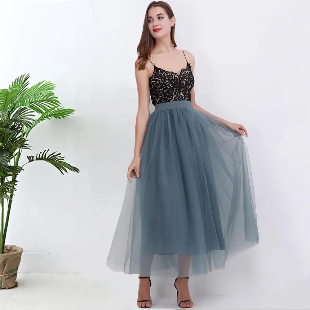 Бальное платье 2020 Новинка Весна эластичная талия длинная тонкая сетчатая юбка высокая талия однотонная плиссированная юбка-пачка для женщин Saias Faldas