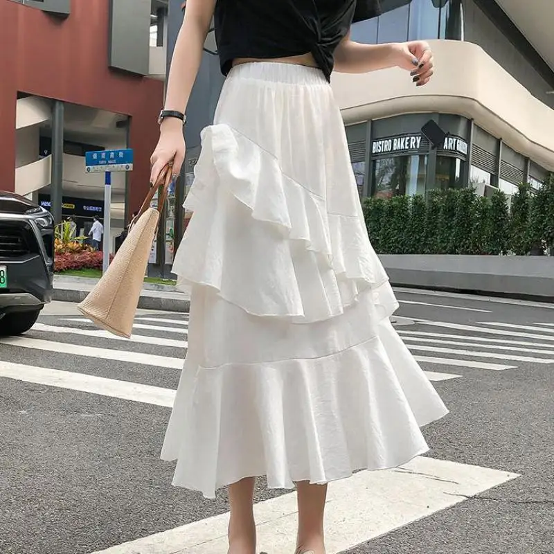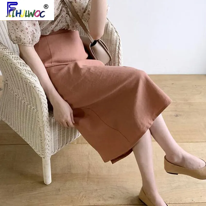 2020 летняя длинная юбка с разрезом, Лидер продаж, женские корейские юбки в консервативном стиле для девочек Flhjlwoc, винтажные юбки с высокой талией, 4312