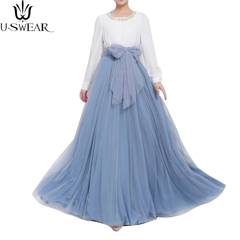 Новый 2019 сезон: весна–лето Длинные Женская юбка из тюля модные Высокая Талия трапециевидной формы лоскутное плиссированные элегантная юбк...