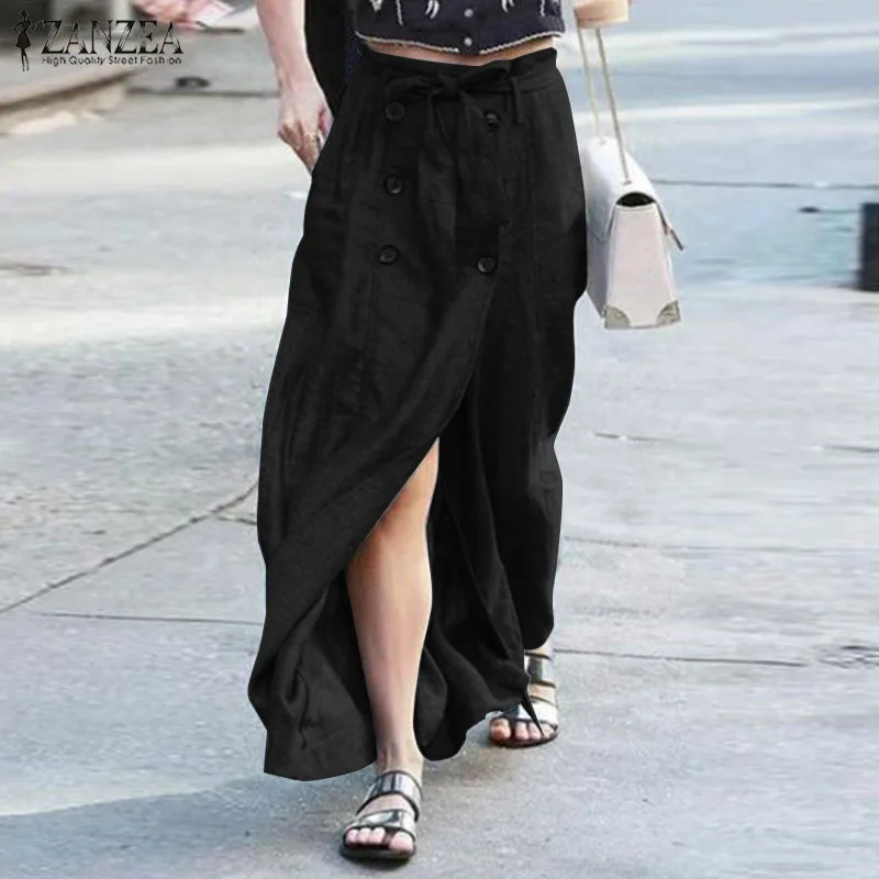 Модные ZANZEA, женские юбки, осенние длинные юбки, повседневные, на пуговицах, с разрезом, однотонные юбки, Jupe Faldas Saia, женские, для вечеринки, Vestido 7