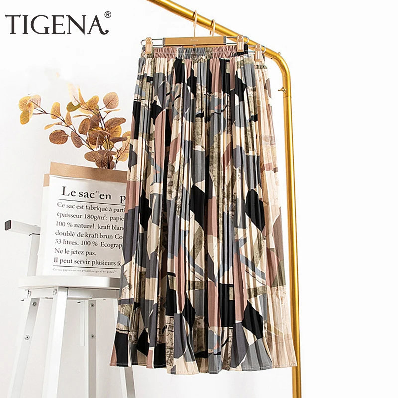 Женская винтажная длинная Плиссированная юбка TIGENA, Красивая шифоновая юбка макси с цветочным принтом и высокой талией на лето 2020
