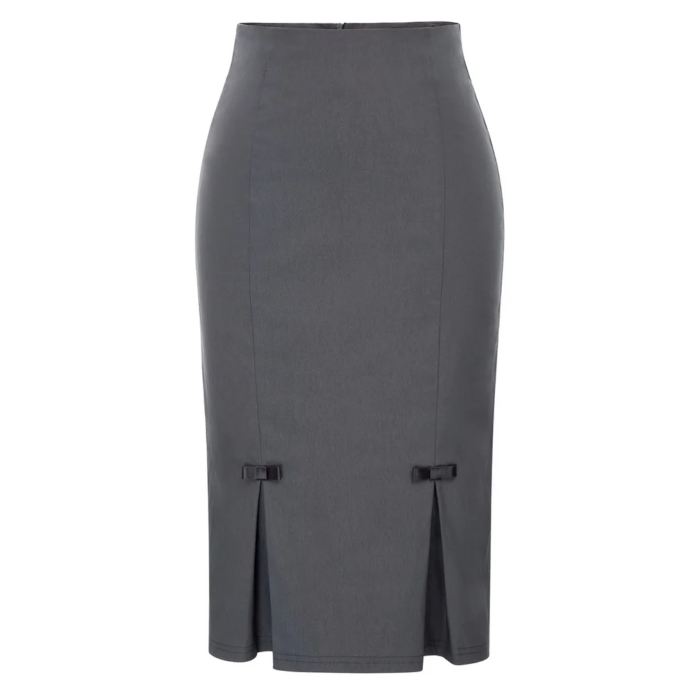 BP женщины винтажная юбка-карандаш ретро лук-узел Украшенные бедра обернутый Bodycon колено длина Однотонная юбка Классическая Рабочая Юбка