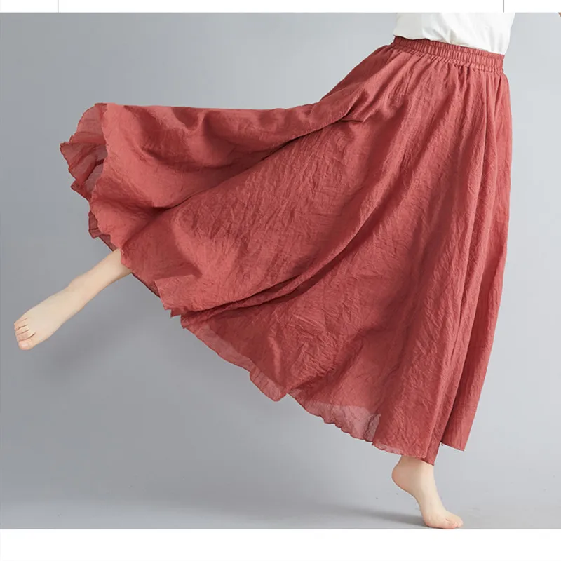 Высококачественная хлопковая льняная Макси-юбка женская Повседневная Эластичная Высокая талия плиссированная трапециевидная пляжная юбк...