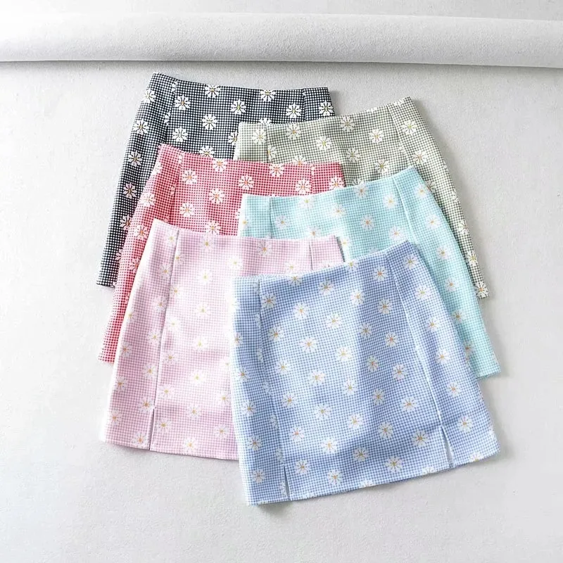 Летняя женская мини-юбка с принтом Маргариток и шортами, мини-юбка с шортами, синяя, черная, зеленая, розовая, 2020