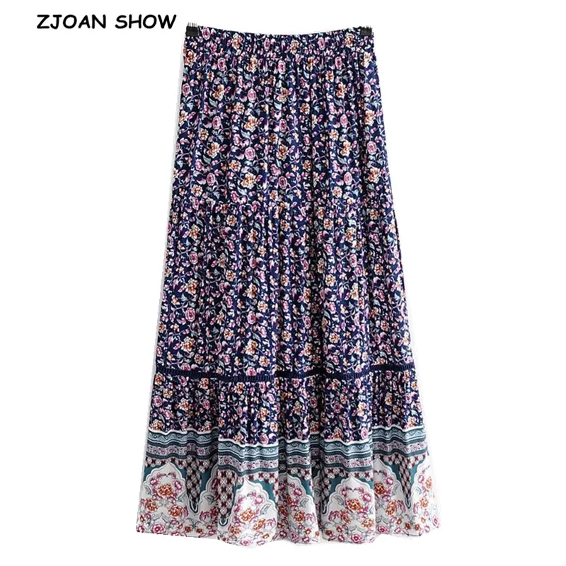 Новинка 2019, длинная юбка в богемном стиле с кружевным подолом и цветочным принтом, женская пляжная юбка со шнуровкой на талии