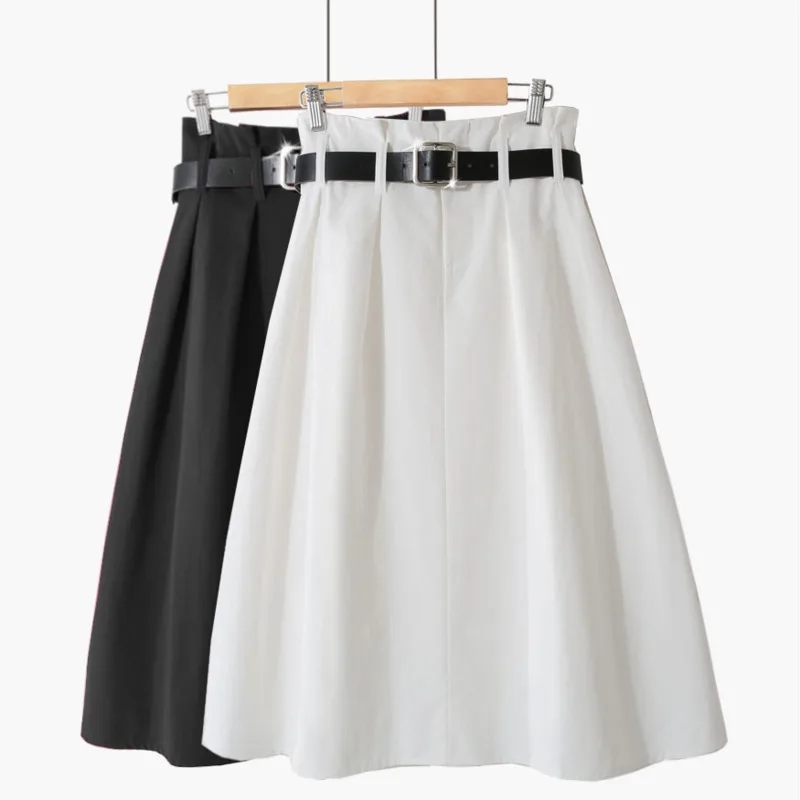 PEONFLY модная юбка женская с поясом 2019 корейские демисезонные элегантный стиль Высокая талия плиссированная трапециевидная повседневная юбк...