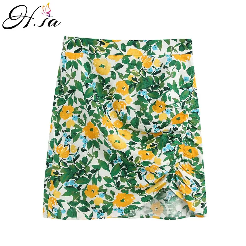Женская летняя мини-юбка H.SA, с высокой талией и оборками, с принтом, повседневные, вечерние