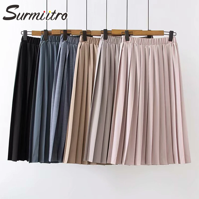 женская юбка-миди SURMIITRO, розовые черные и синие цвета плиссированные юбки с высокой талией в корейском стиле для женщин весной и летом