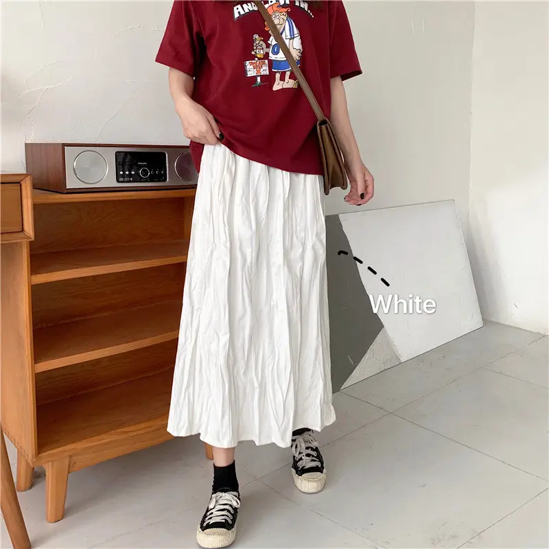 2 цвета миди юбка женская одноцветная длинная юбка женская винтажная стильная эластичная талия высокая талия трапециевидная юбка женская s ...