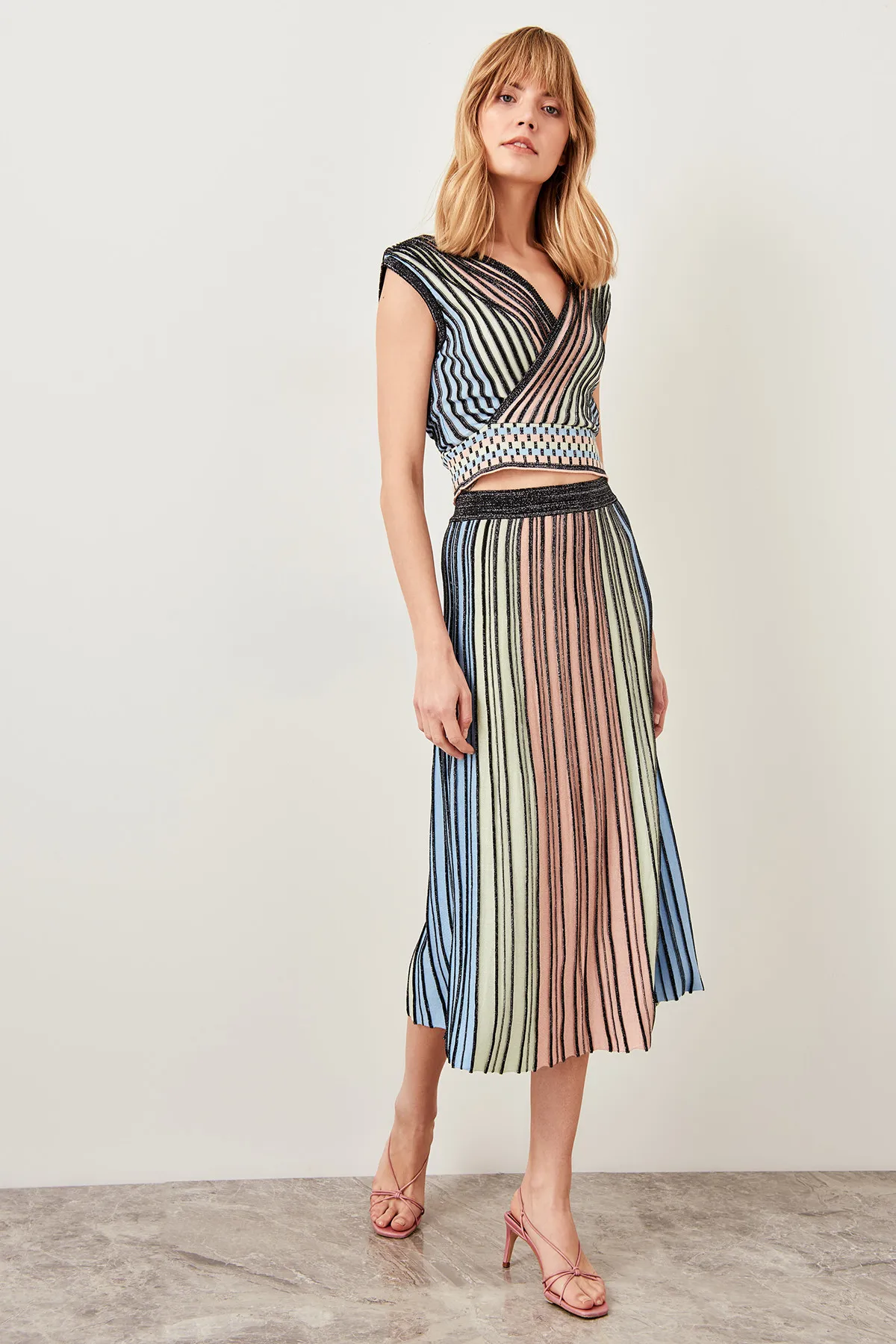 Trendyol разноцветная вязаная юбка или топы, летние блестящие плиссированные топы TCLSS19DU0045