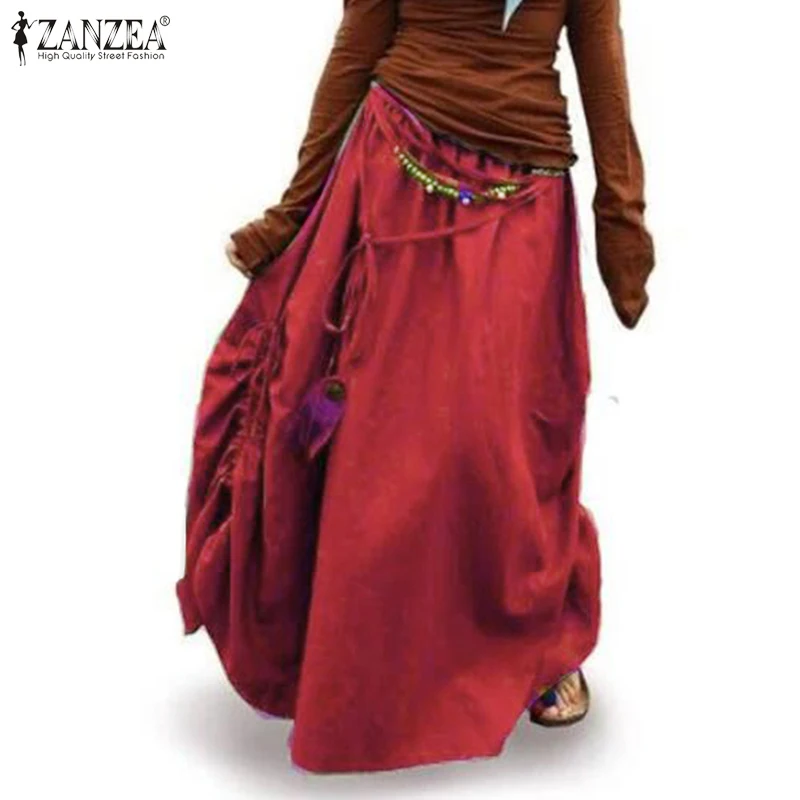 Женские повседневные винтажные Макси-юбки ZANZEA, длинные однотонные юбки с эластичной резинкой на талии, большие размеры 5XL, осень 2020