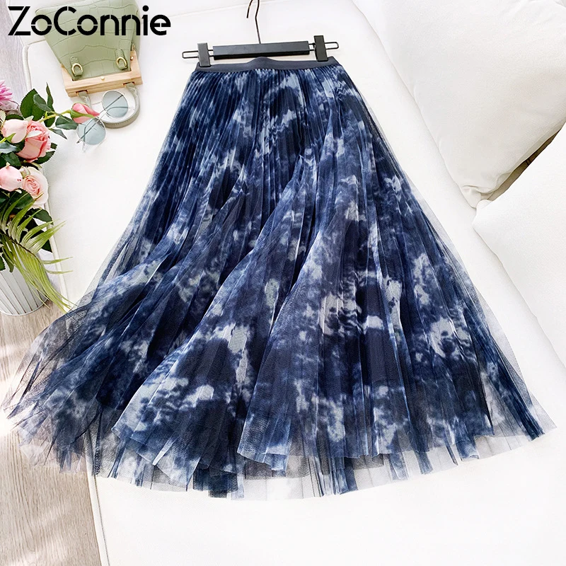 Женская Тюлевая юбка трапециевидной формы, весенне-летняя винтажная сетчатая длинная Плиссированная юбка с высокой талией, элегантная женская юбка-пачка макси, Тюлевая юбка s