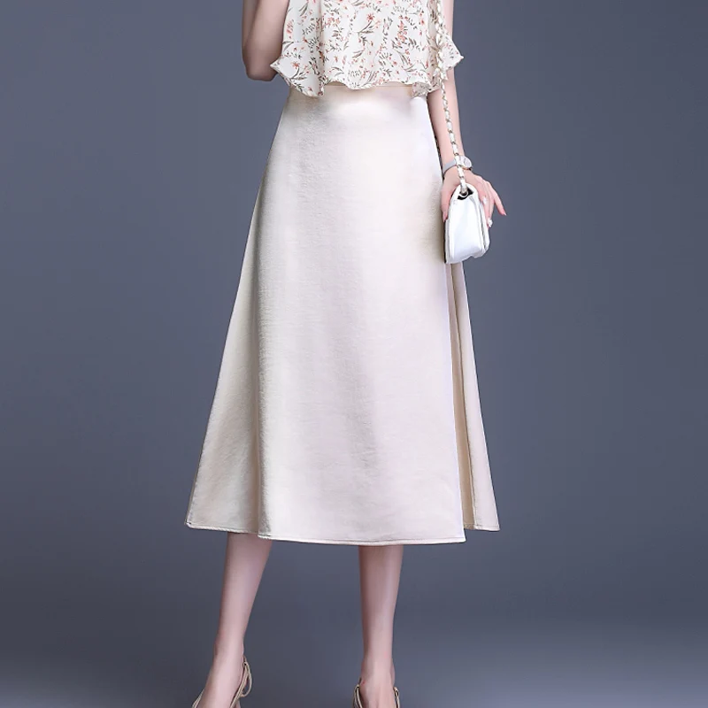 Женские юбки в Корейском стиле, элегантные женские черные атласные юбки, модные вечерние юбки для офиса, винтажные однотонные юбки с высокой талией