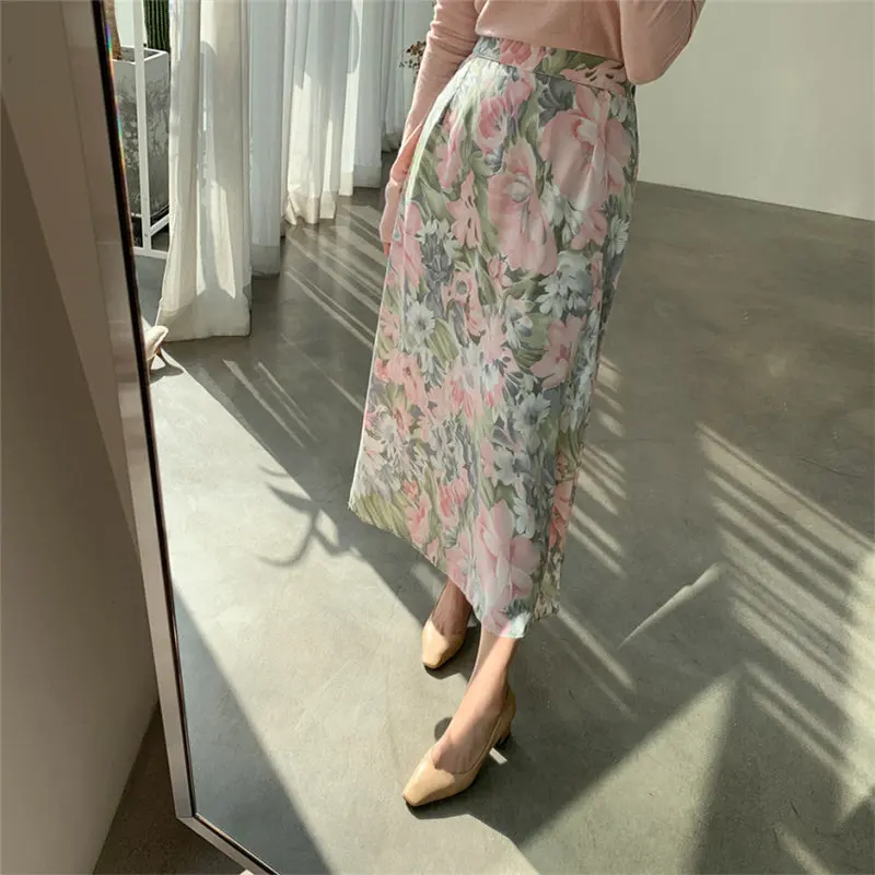 Для женщин Сладкий уличная плиссированные юбка весна-лето новый 2019 эластичный пояс миди трапециевидной формы юбки для белый черный, розовы