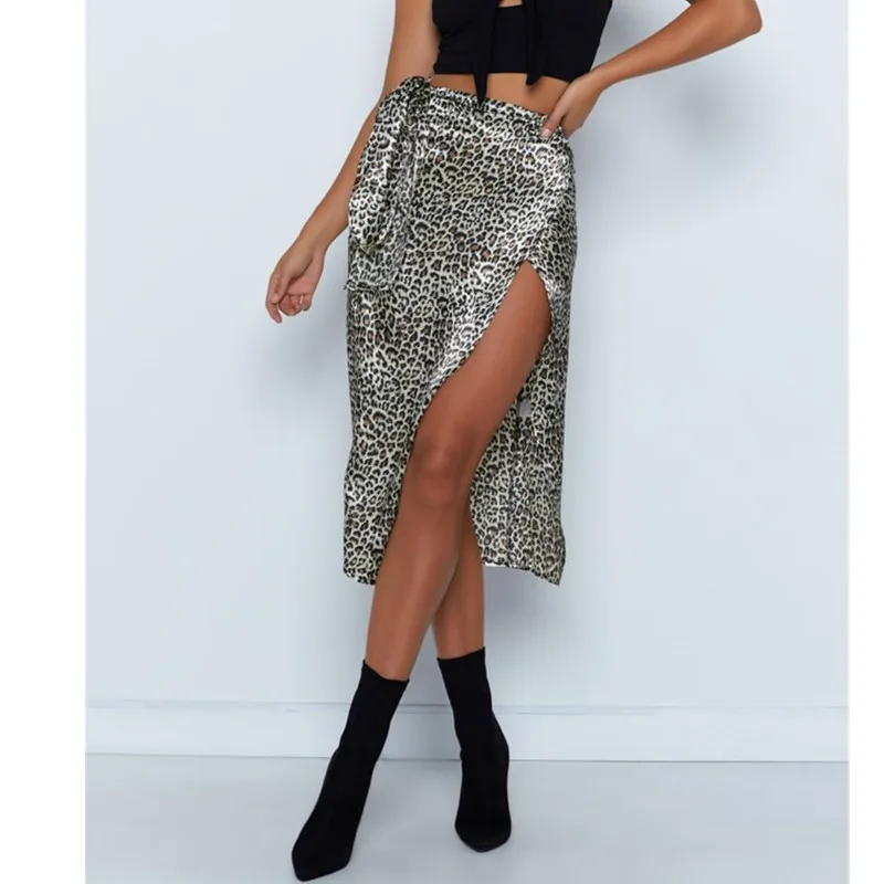 Женская Юбка-миди с леопардовым принтом, высокая талия, разрезы, бедра, а-силуэт, юбки для женщин, летние каникулы, сексуальная Длинная юбка