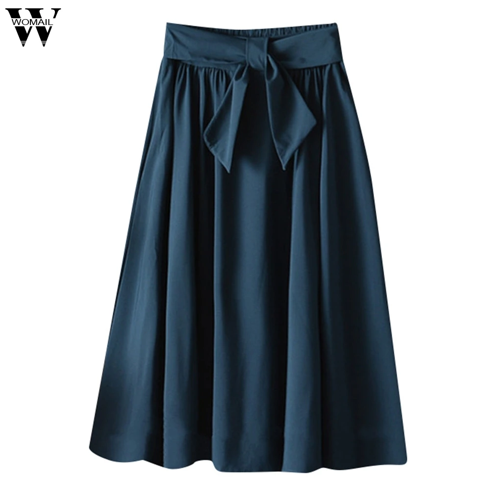 Женская юбка для женщин, сексуальная модная юбка с завышенной талией и поясом, пляжная юбка средней длины до колена, школьная юбка трапециевидной формы, новинка 2019, M523