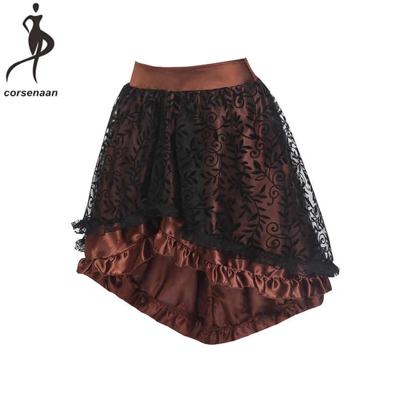 Плюс Размеры коричневый/черный Для женщин викторианской Асимметричный Готический стимпанк корсет юбка с молния сзади 937 #