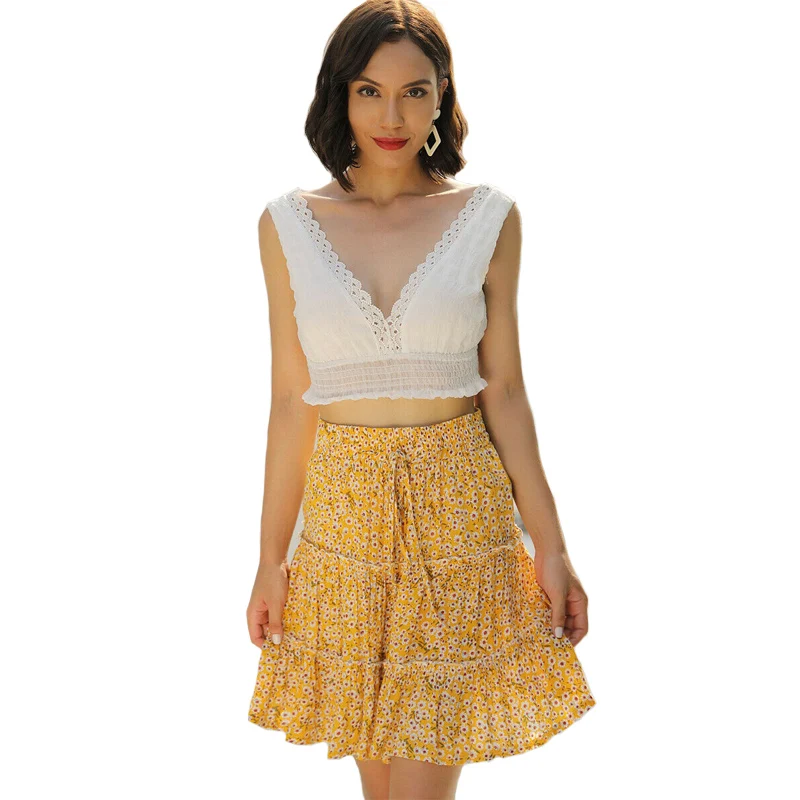 Новое Женское богемное шифоновая юбка с цветочным принтом женские цветочное Джерси Цыганская Высокая Талия мини-юбка Повседневное Открыто...