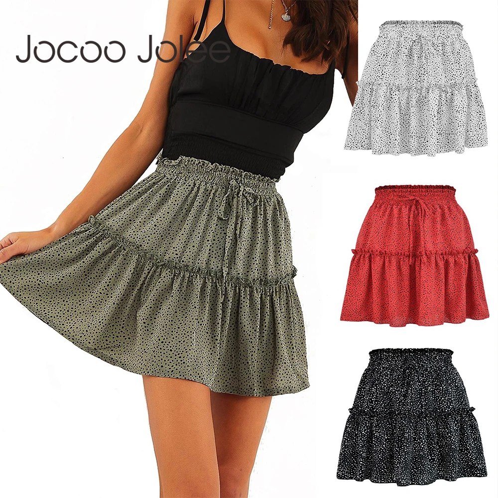 Jocoo Jolee женская шифоновая юбка в горошек с высокой талией, повседневная плиссированная мини-юбка с оборками, элегантная летняя пляжная юбка 2020