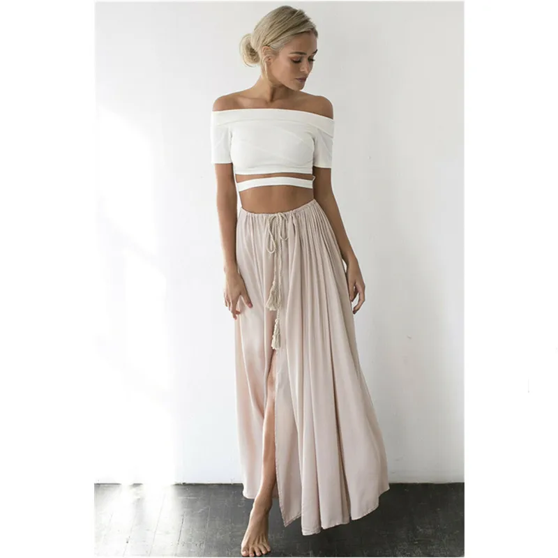Женские повседневные свободные Комфортные юбки, однотонная Цыганская длинная Длинная женская летняя пляжная юбка с Боковым Разрезом