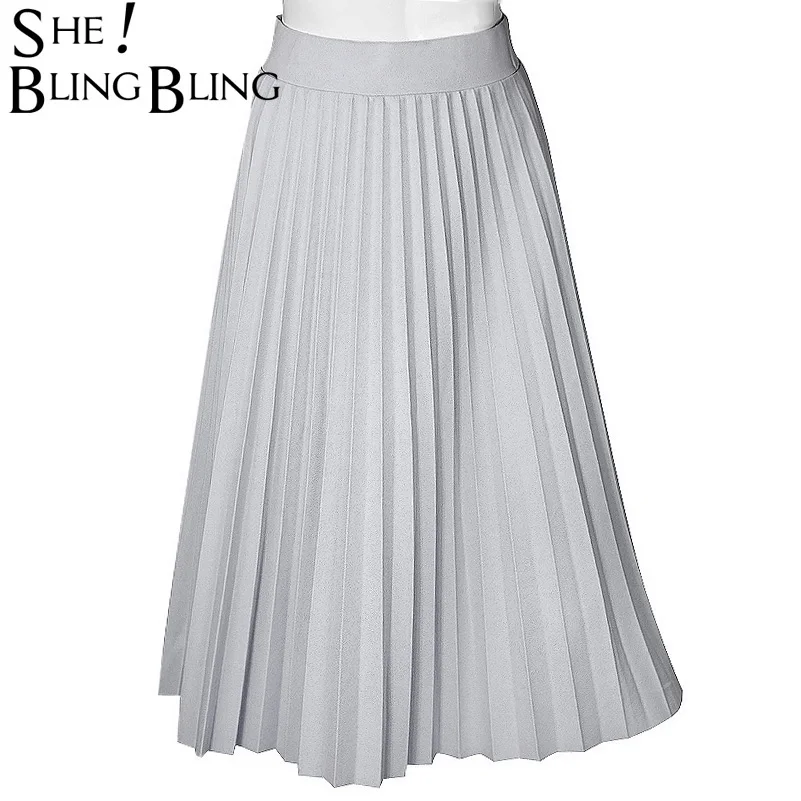 Для женщин мода эластичный пояс Твердые Цвет Женская гофрирующая Юбка со складками элегантный Midi эластичный пояс макси юбка trendyol Z326