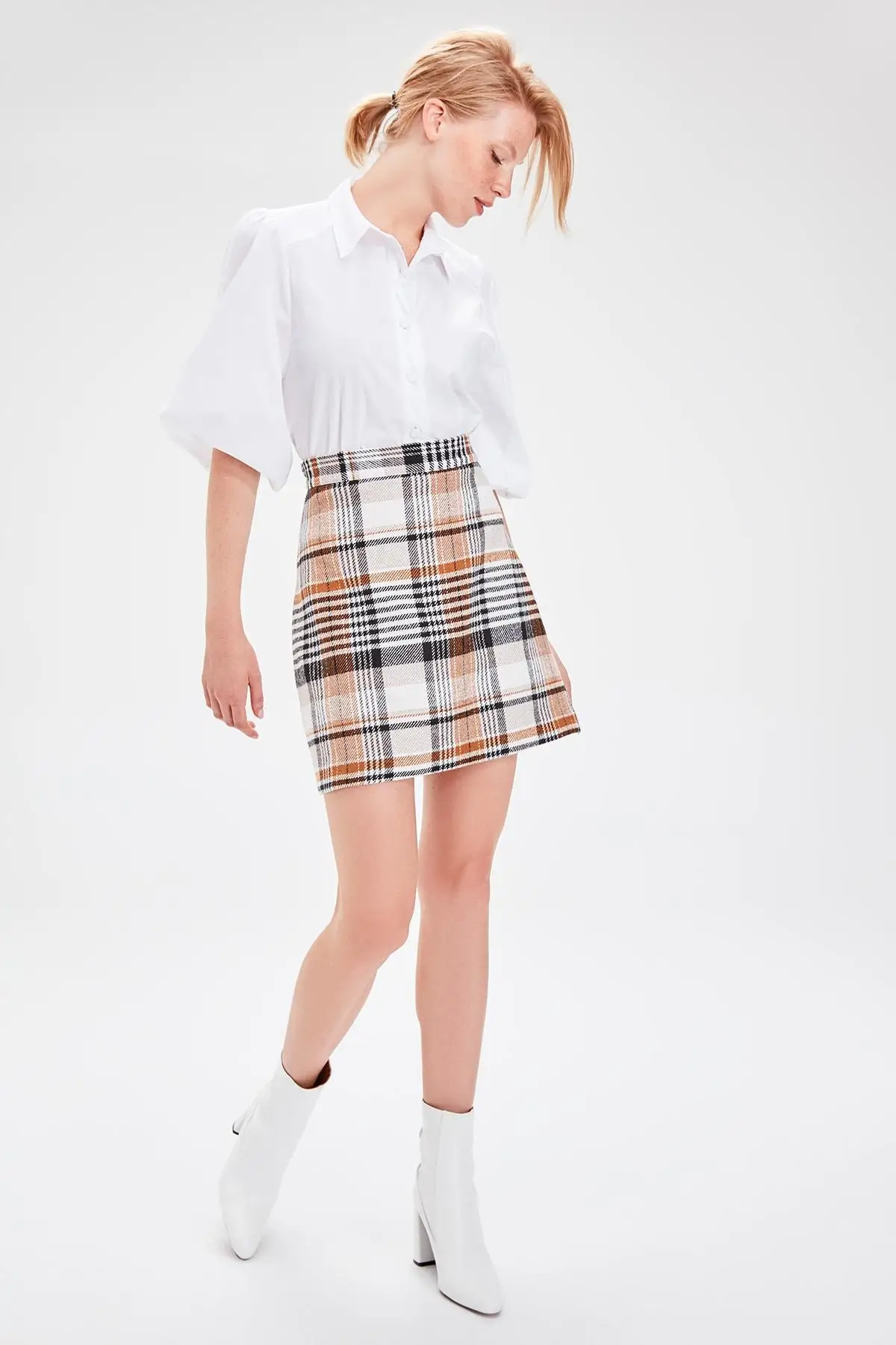 Trendyol юбка в клетку Camel TWOAW20ET0104