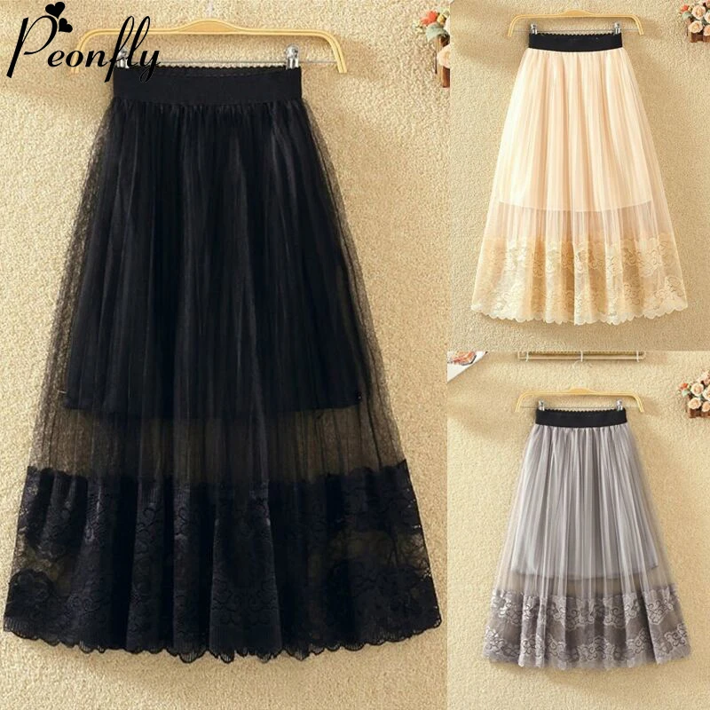 2019 летние длинные юбки из тюлевой ткани Для женщин черные, бежевые Розовый Серый Белый сетчатая юбка в складку слои линия для девочек пляжны...