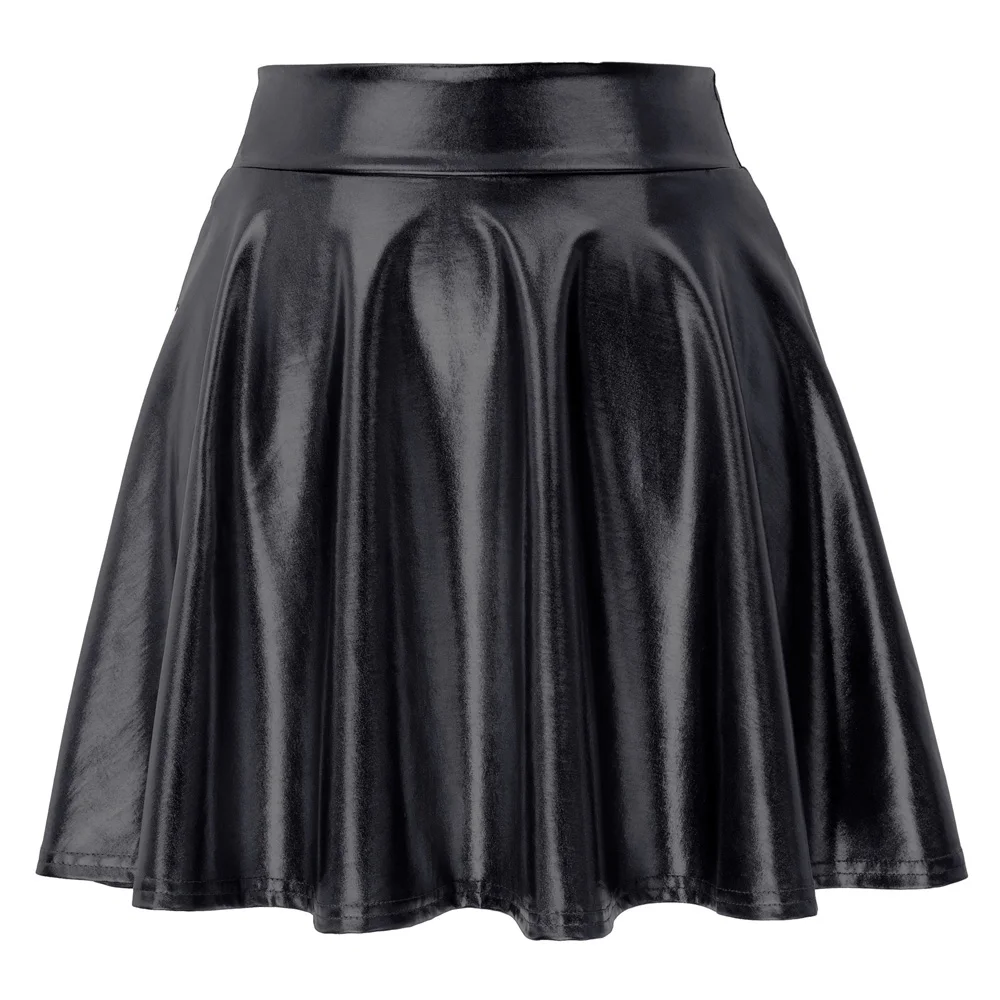 Женская юбка в стиле ретро, однотонная, с имитацией кожи, блестящая, металлическая, короткая юбка