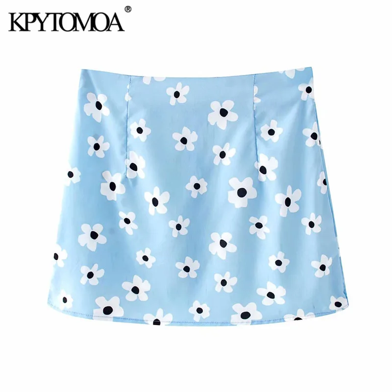 KPYTOMOA Женская милая модная мини-юбка с цветочным принтом, винтажная трапециевидная Летняя Пляжная Женская юбка на молнии, Faldas Mujer, 2020