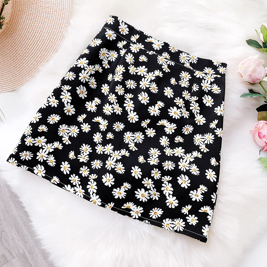 Маленькая Цветочная юбка с ромашками, женская летняя юбка 2020, короткая юбка, Женская Ретро Юбка с высокой талией, тонкая облегающая юбка