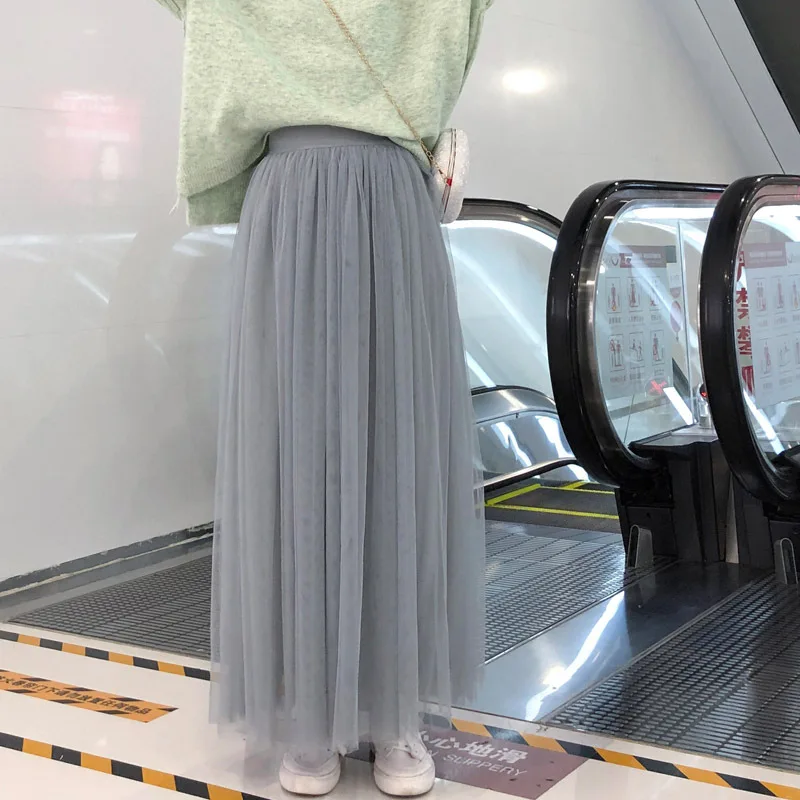 Длинная фатиновая юбка для женщин 2020, летняя сетчатая юбка-пачка с высокой талией, плиссированная юбка для женщин, черная, белая, серая Макси-юбка, jupe, фатиновая, femme