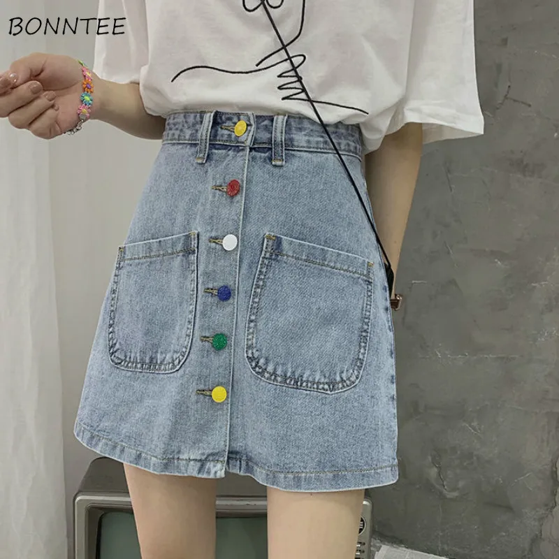 Женские юбки, мини-юбки на пуговицах, трапециевидные, с высокой талией, однотонные, повседневные, корейские, модные, шикарные, для отдыха, уличная одежда, для студентов, для повседневной носки, Новинка