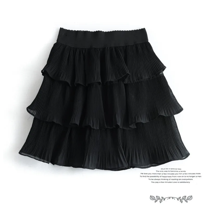 Летние мини-юбки для женщин и девочек, Милая трапециевидная юбка, черно-белая шифоновая юбка, Женская плиссированная мини-юбка с эластичной резинкой на талии