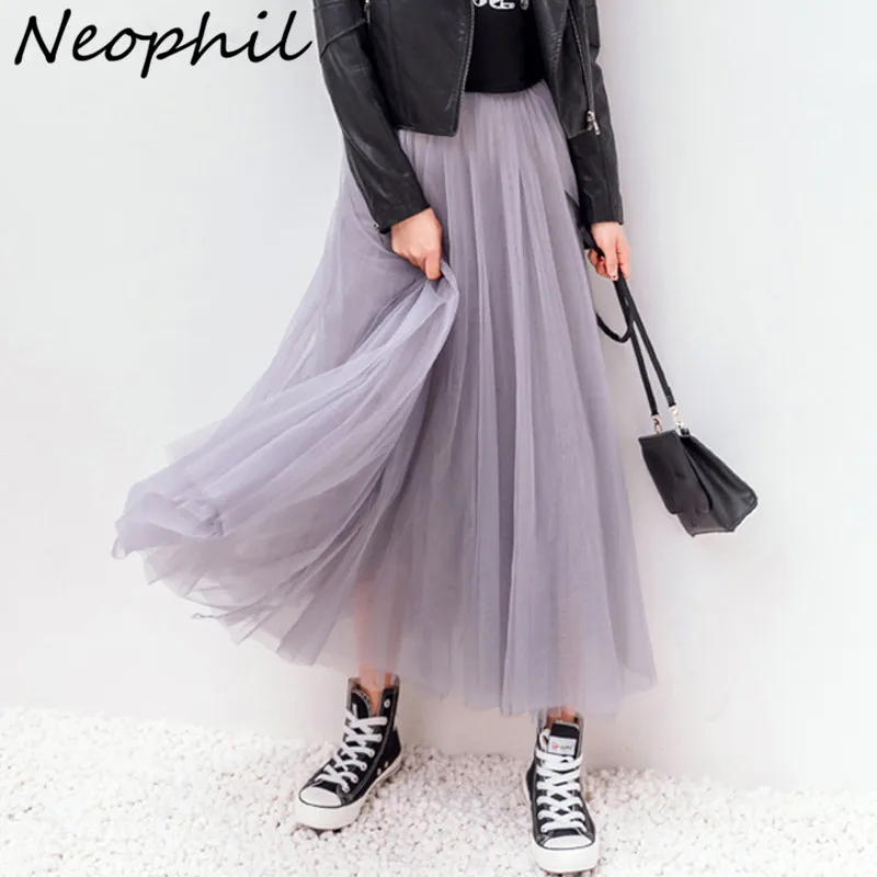 Neophil 2019 эластичные Высокая Талия Тюль Сетка юбка миди летние Винтаж женские длинные линии плиссированные юбки Женский Юп Longue S1631