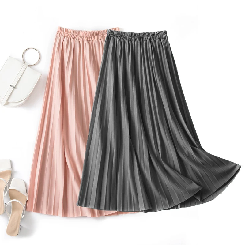 Весна лето повседневная юбка 2020 НОВАЯ тонкая женская элегантная плиссированная юбка Эластичная Высокая талия тонкая универсальная юбка миди Женская