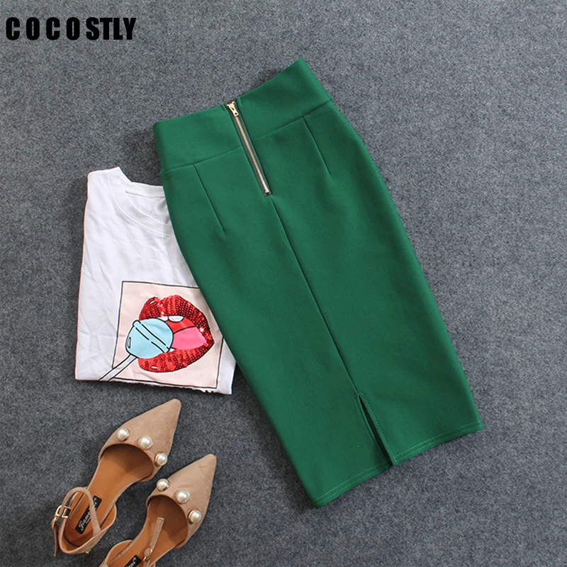 Эластичная юбка-карандаш с завышенной талией женские офисные женские юбки Футляр Лето 2019 до колена с разрезом сзади женские офисные юбки Saia