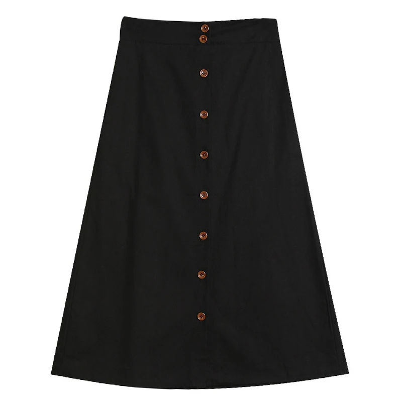 Летние черные юбки цвета хаки для Womnes высокой талией линии пуговица для юбки опрятный Harajuku Кнопка Faldas Largas элегантный Mujer юбка
